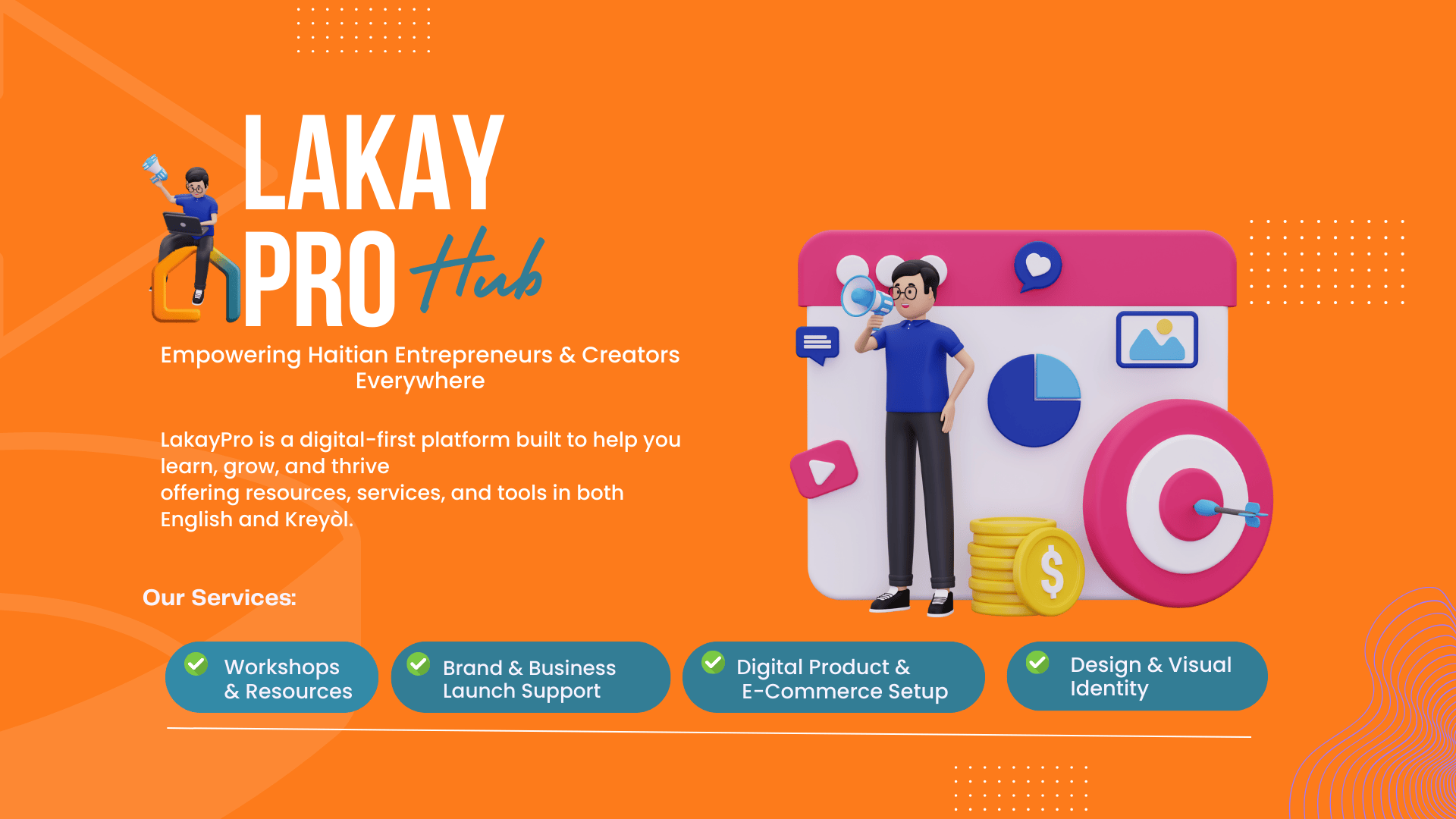 To empower our people to create, grow, and lead confidently — in English or Kreyòl, from anywhere in the world. Whether starting a brand, launching a digital product, or learning where to begin, we’re here to walk with you.