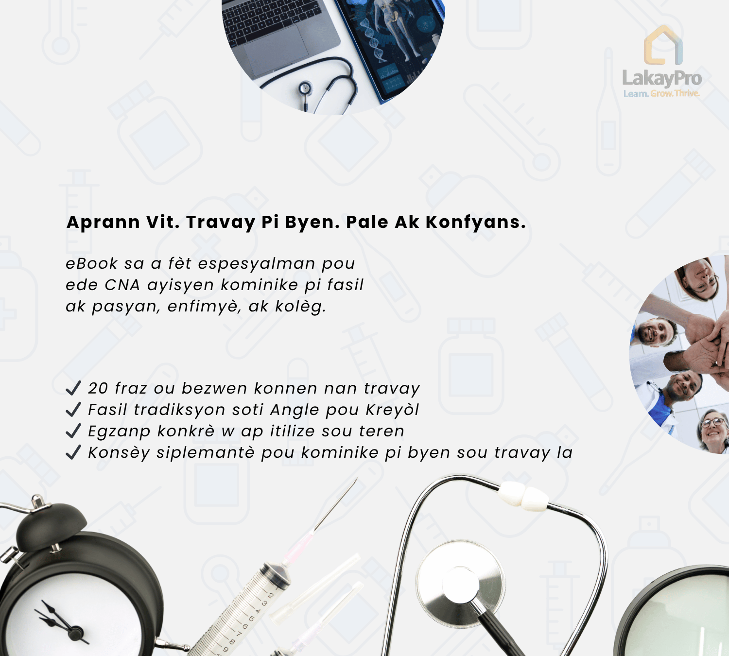 This free eBook is specially designed to help Haitian CNAs communicate more easily with patients, nurses, and coworkers. Whether you’re new to the job or want to improve your English at work, this guide gives you the phrases that matter most in clear English with Creole explanations.